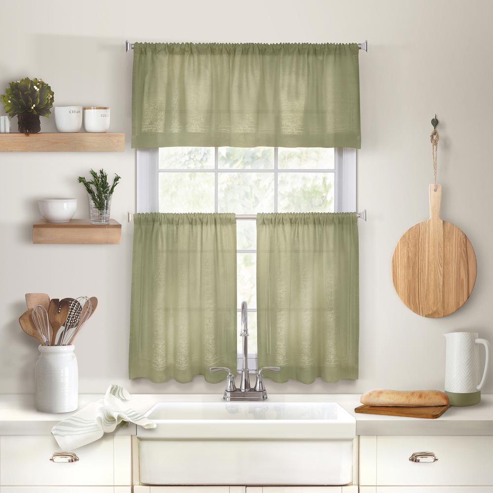 Duck River Kingston Sage Kitchen Curtain Set 58 In W X 15 In L 3 Piece Kingston 3153d 12 The Home Depot