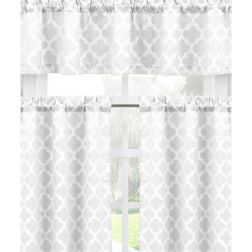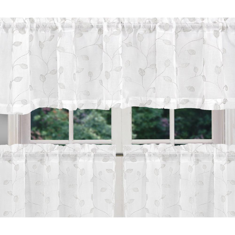Home Maison Elara White Silver Kitchen Curtain Set 56 In W X 15 In L In 3 Piece Elkws 12 14204 The Home Depot