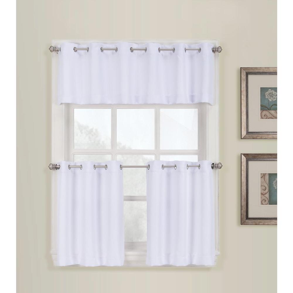 No 918 Martine White Microfiber Kitchen Curtains 3 Piece Set 54 In W X 36 In L 50432 The Home Depot