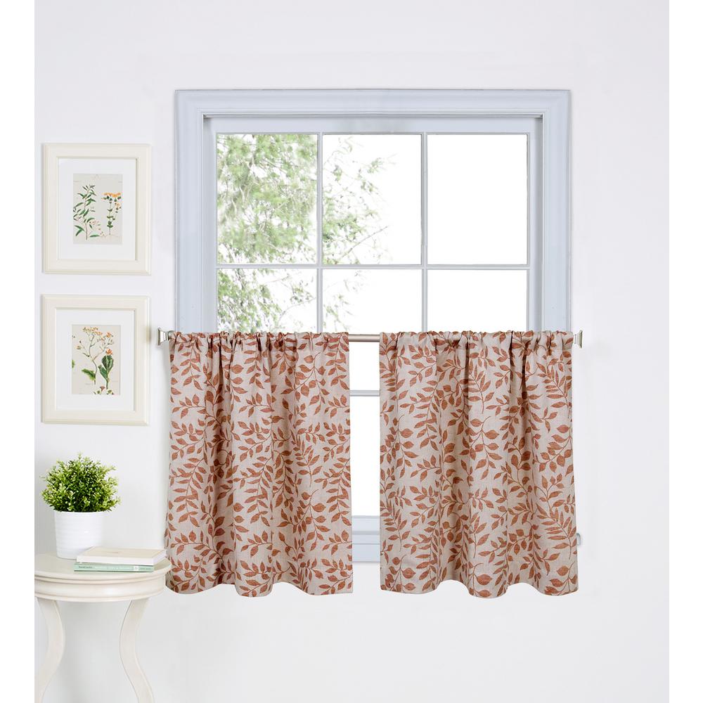 Kensie Maelis Mahogany Room Darkening Kitchen Curtain Set 29 In W X 36 In L 3 Piece Makma 12 14089 The Home Depot