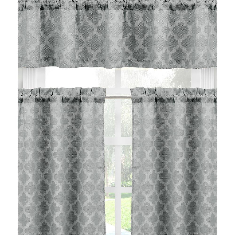 Home Maison Longoria Grey Homemaison Jacquard Kitchen Curtain Set 56 In W X 15 In L In 3 Piece Lokgy 12 12195 The Home Depot