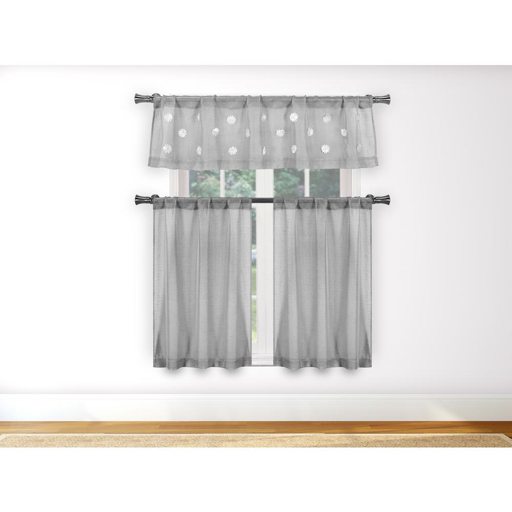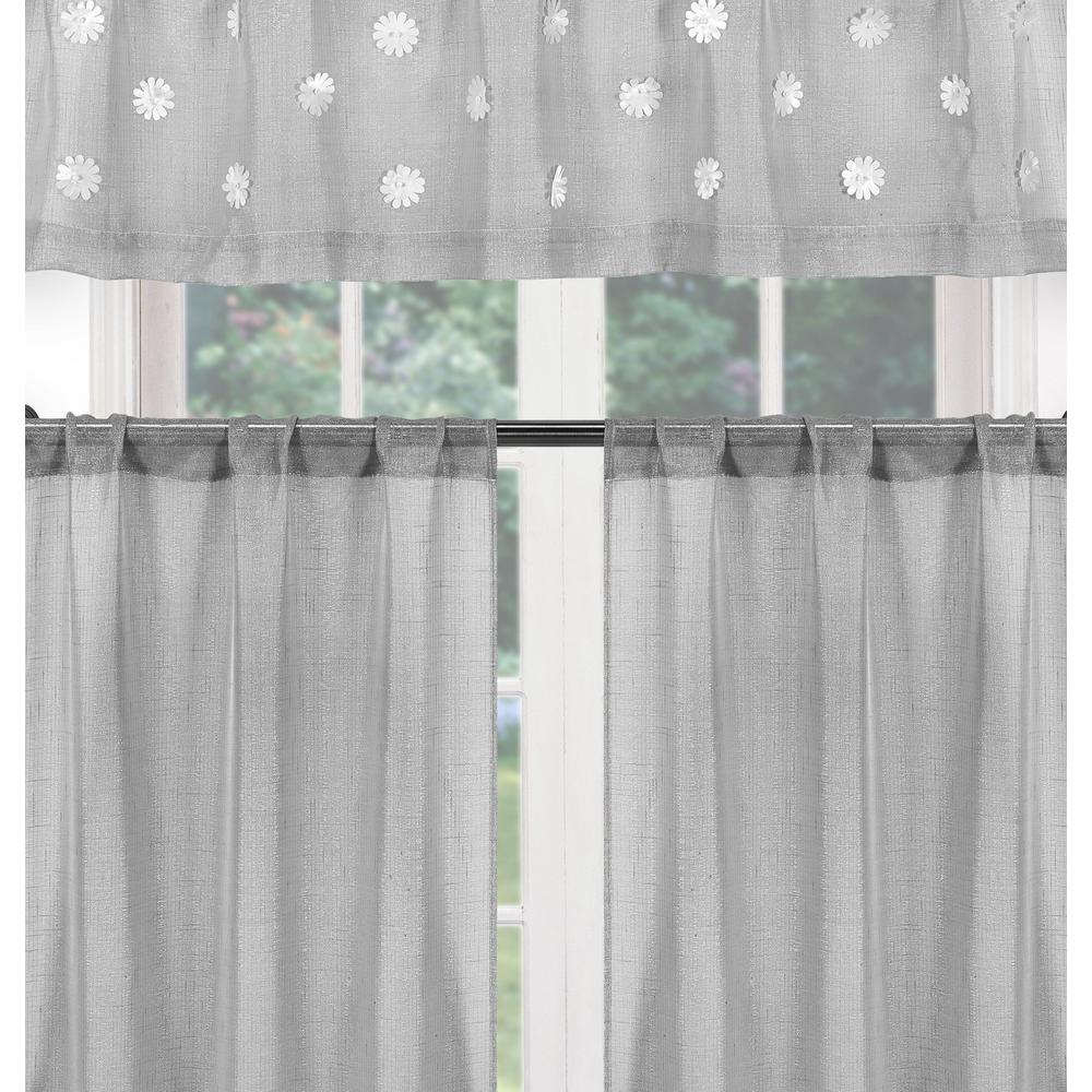 Kensie Daisy Silver Kitchen Curtain Set 55 In W X 15 In L 3 Piece Daksl 12 14446 The Home Depot