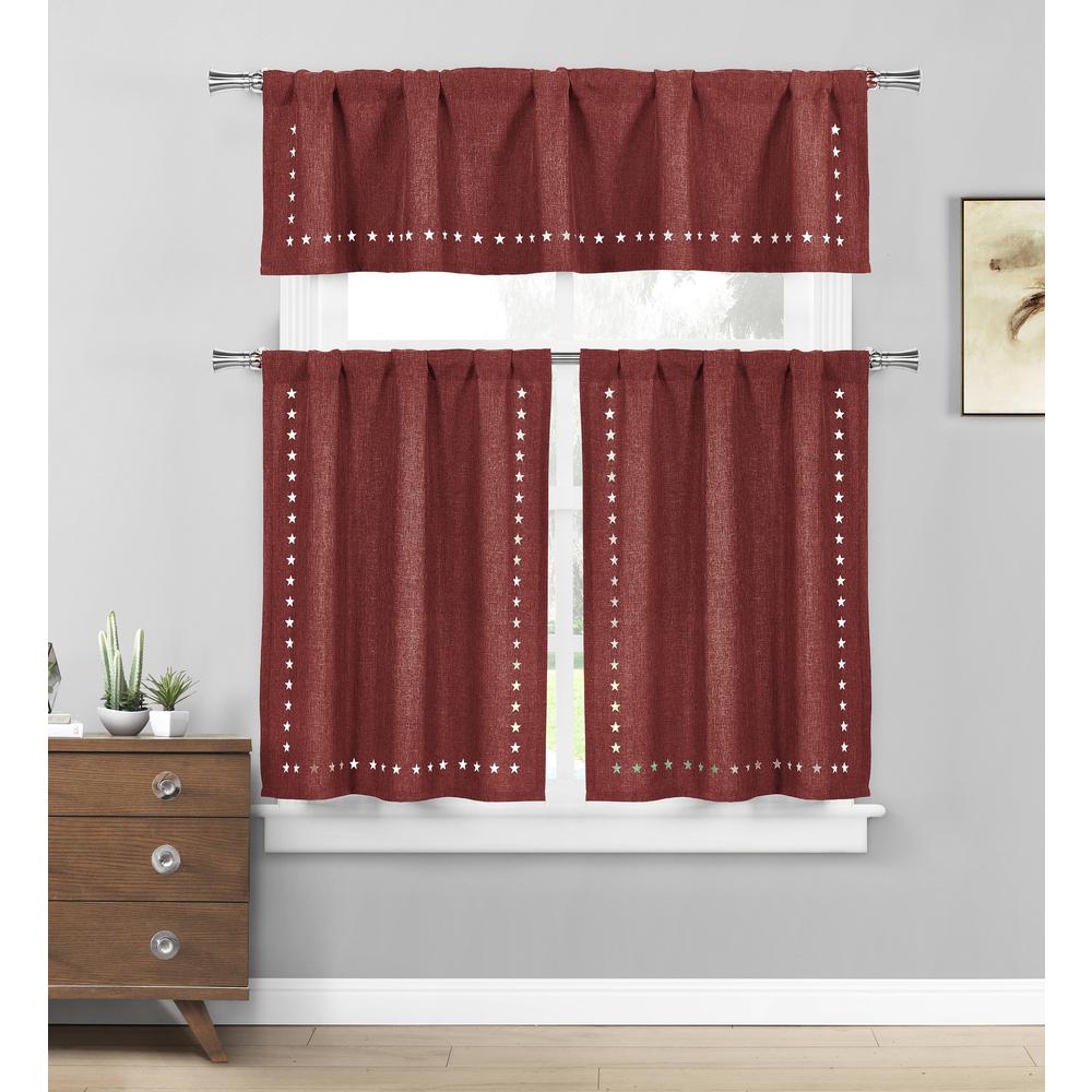 Home Maison Conor Stars Burgundy Kitchen Curtain Set 58 In W X 15 In L In 3 Piece Cokby 12 12277 The Home Depot