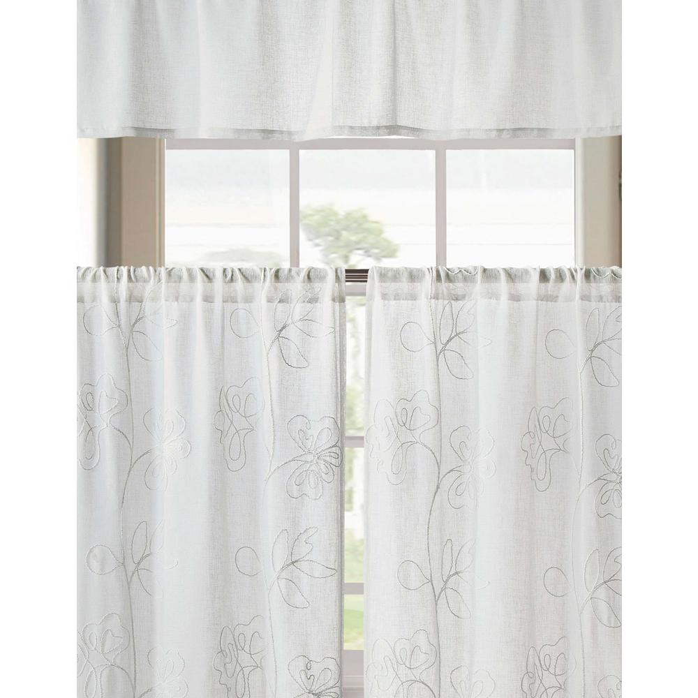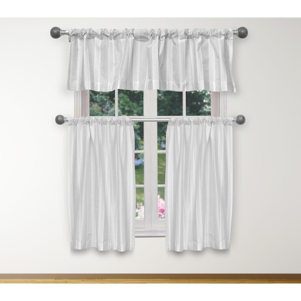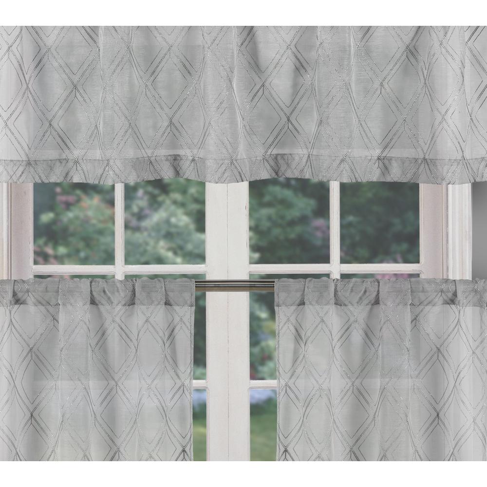 Duck River Phoebe Kitchen Valance In White Silver 15 In W X 58 In L 3 Piece Phoe 15302d 12 The Home Depot
