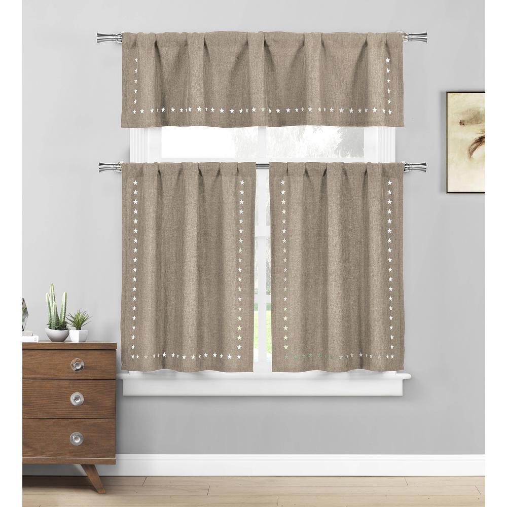 Home Maison Conor Stars Linen Kitchen Curtain Set 58 In W X 15 In L 3 Piece Cokln 12 12274 The Home Depot
