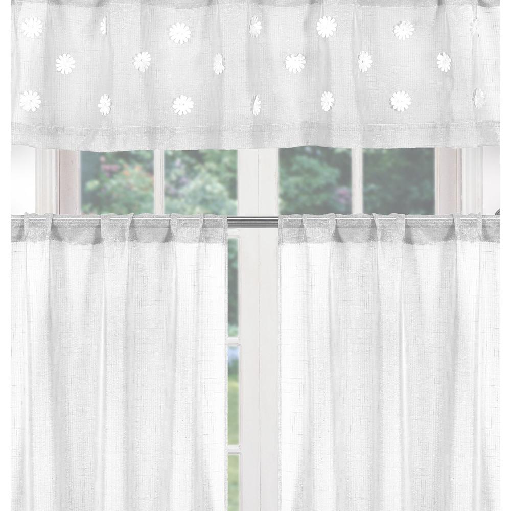 Kensie Daisy White Kitchen Curtain Set 55 In W X 15 In L 3 Piece Dakwh 12 14445 The Home Depot