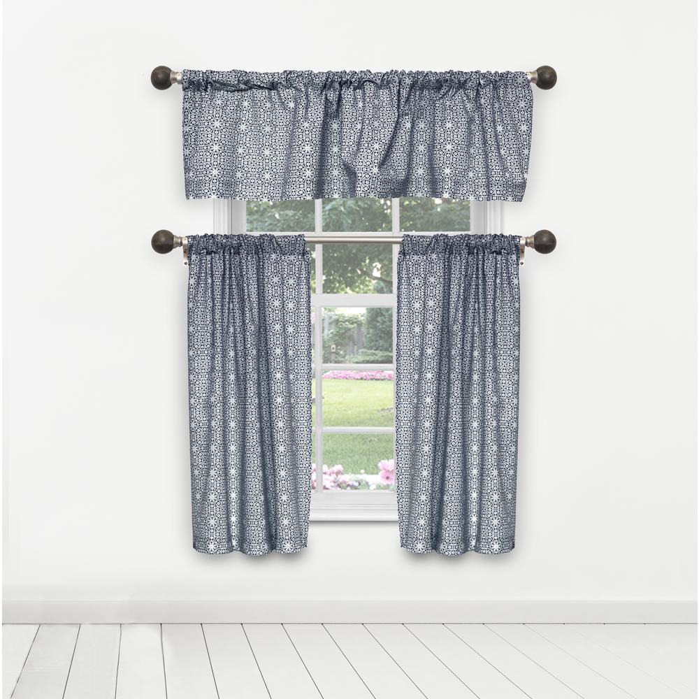 Achim Tattersall 58 In W X 36 In L Polyester Light Filtering Window Rod Pocket Tier And Valance Set In Navy Tttv36ny12 The Home Depot In 2020 Kitchen Window Curtains Farmhouse Style Curtains Curtains