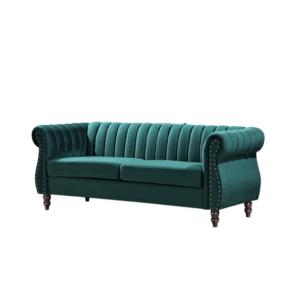 Us Pride Furniture Louis 76 4 In Green Velvet 3 Seater Chesterfield Sofa With Nailheads S5647 S The Home Depot