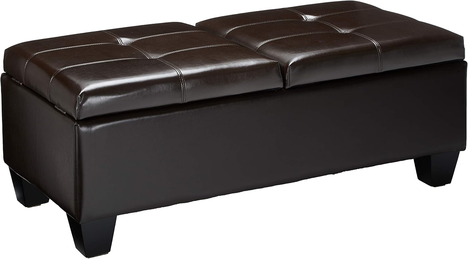 Amazon Com Christopher Knight Home Merrill Double Opening Leather Storage Ottoman Chocolate Brown Furniture Decor