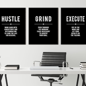 Amazon Com Large Inspirational Wall Art 3 Panels Framed Office Poster Prints Grind Hustle Execution Quote Positive Affirmation Motivational Wall Art Office Wall Decor For Living Room Bedroom Framed Ready To Hang Posters