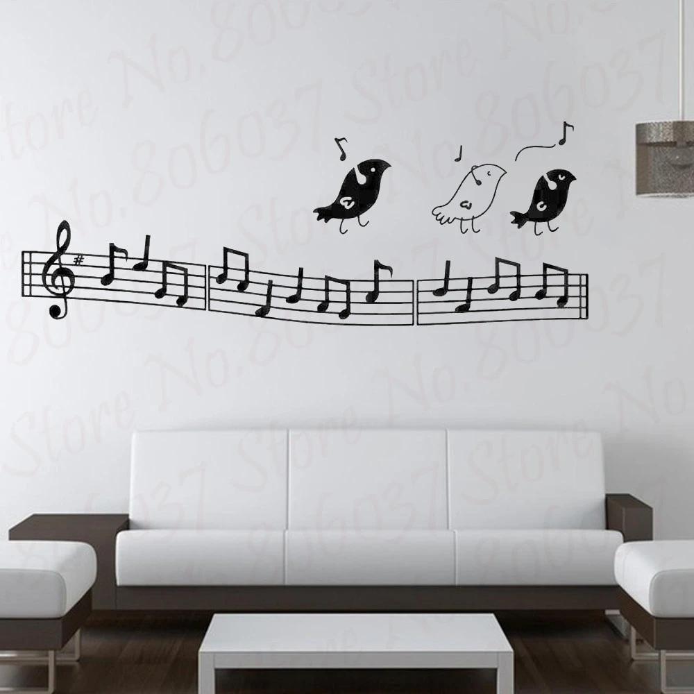 Wall Music Art Birds Wall Decor Music Notes Wall Decoration Kids Bedroom Musical Notation Removable Wall Decals Stickers Wl918 Wall Stickers Aliexpress