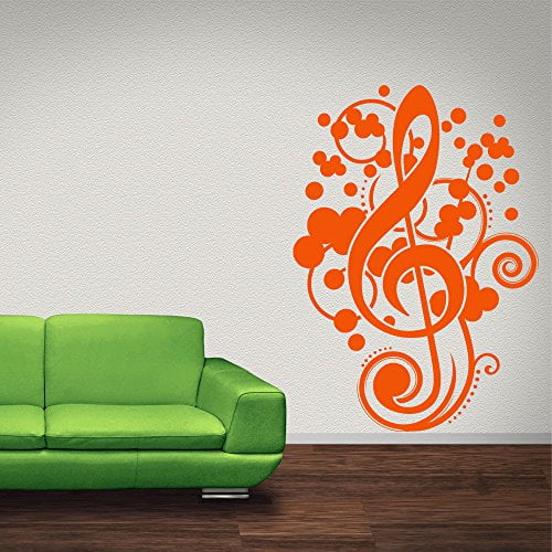 Music Notes With Treble Key Wall Decal Musical Notes Wall Sticker Treble Clef Vinyl Wall Art