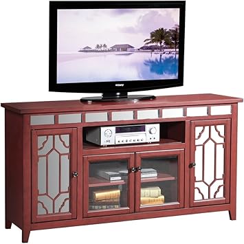 Amazon Com Ncf Furniture Galena Art Deco 60 Mirrored Tv Console In Weathered Red Furniture Decor