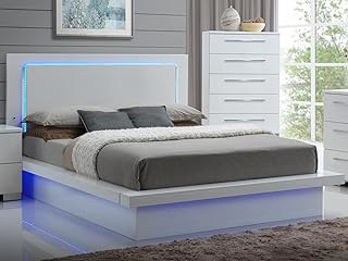Amazon Com Ncf Furniture Saturn 4 Piece Eastern King Bedroom Set In White Lacquer High Gloss Finish With Led Lights Furniture Decor