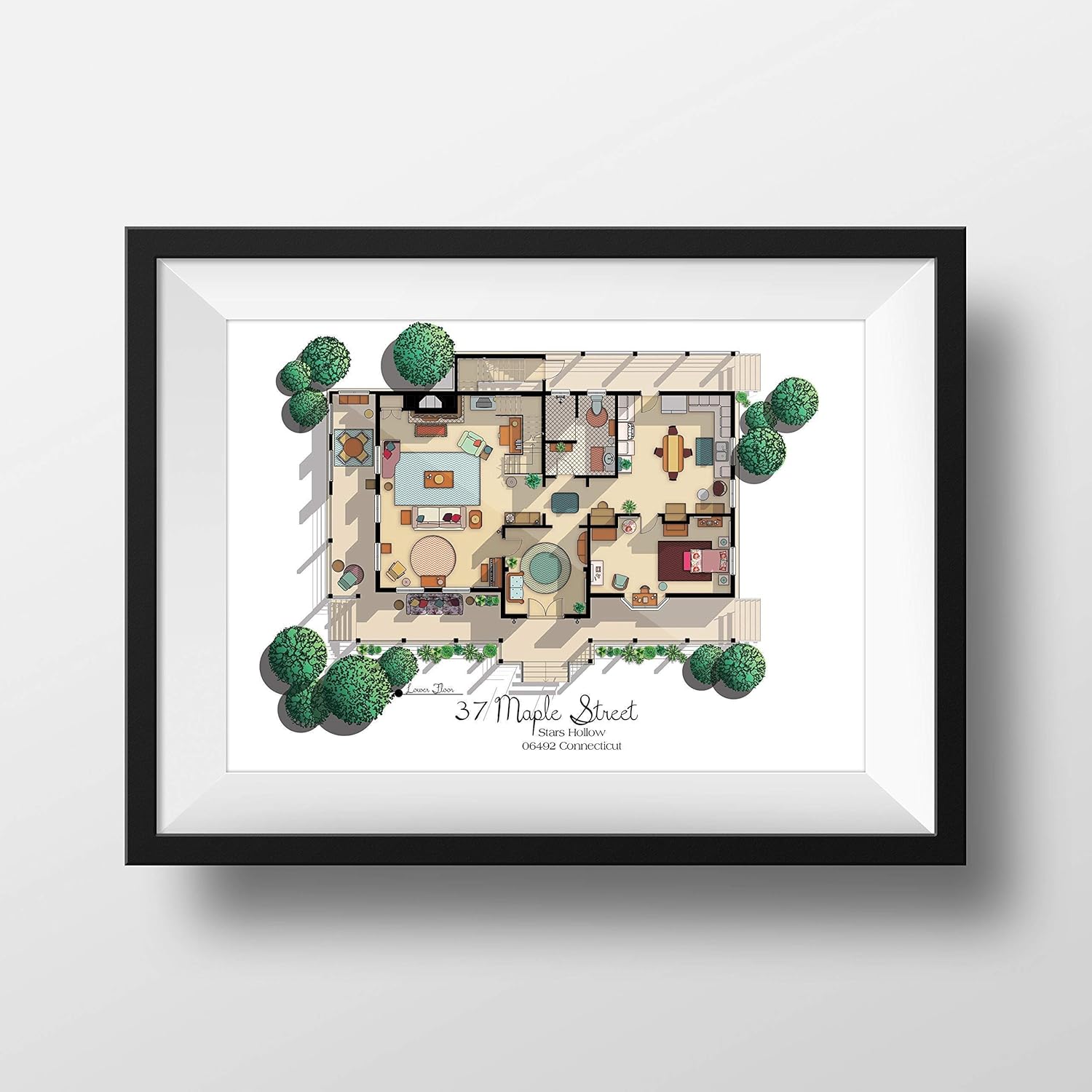 Amazon Com Gilmore Girls House Floor Plan Lorelai And Rory S House Layout Gilmore Girls Poster Gift For Gilmore Girls Fan Gilmore Girls Print Ground Floor Plan With Rory S Room Handmade