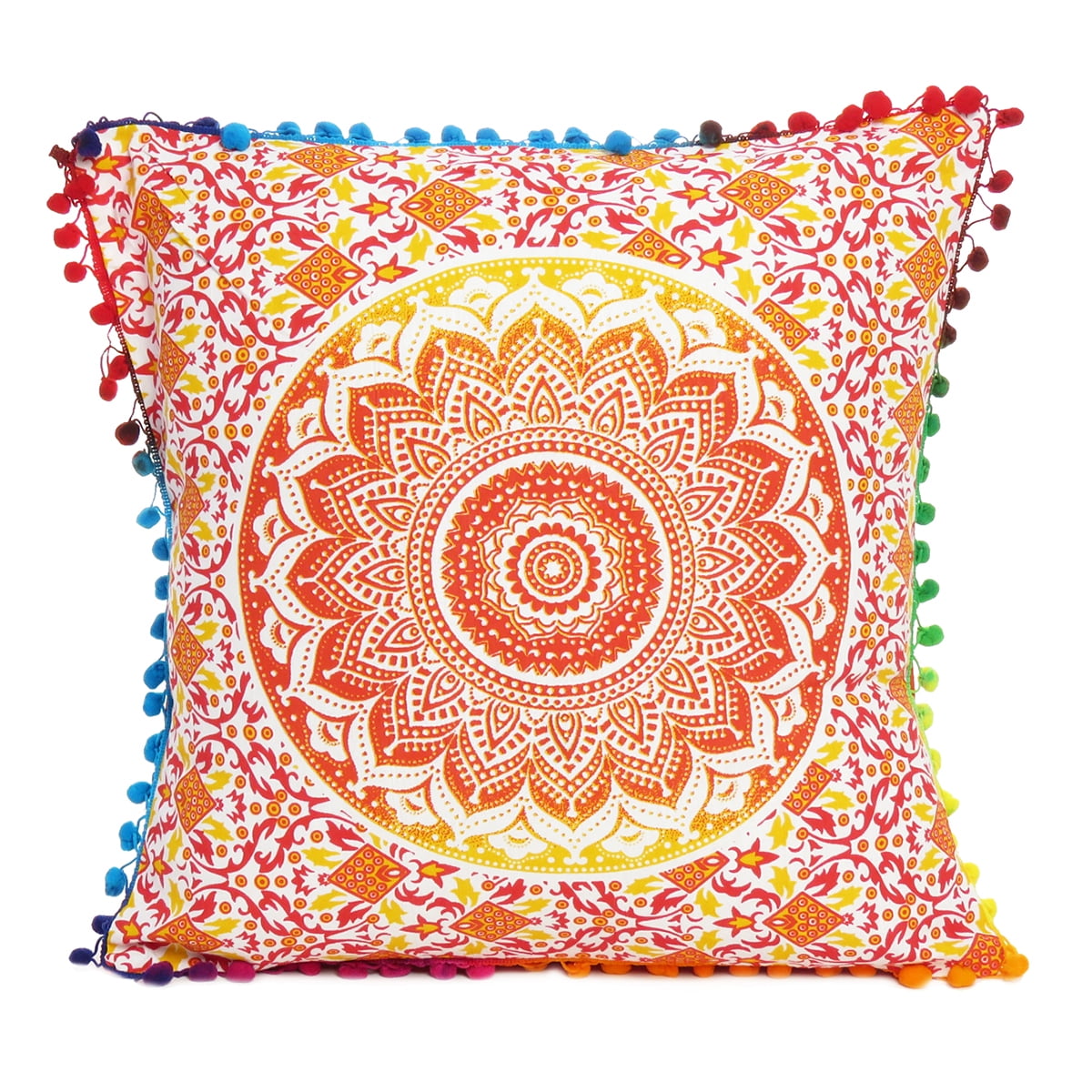 Green Orange Decorative And Accent Mandala Throw Pillow Case 16x16 Inch Royalfurnish Com
