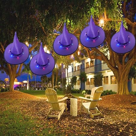 Amazon Com Bymyway Halloween Decorations Outdoor Hanging Lighted Glowing Witch Hat Decorations Led Light Hanging Decor For Outdoor Yard Tree 5 Pack Garden Outdoor