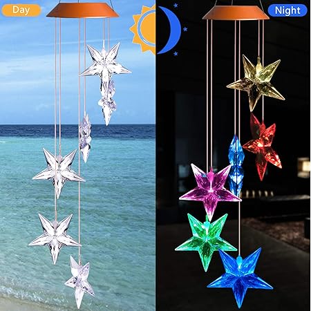 Amazon Com Xxschy Solar Stars Wind Chimes Outdoor Hanging Decor Waterproof Mobile Portable Color Changing Solar Power Led Star Wind Chime Light For Mom Home Patio Yard Window Night Garden Decoration