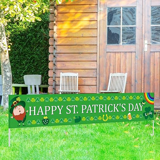 Amazon Com Large Happy St Patrick S Day Banner St Patrick S Day Decorations Shamrock Clover Banner Irish Party Supplies Decorations St Patrick S Day Home Indoor Outdoor Hanging Decor 8 2 X 1 5 Ft Kitchen