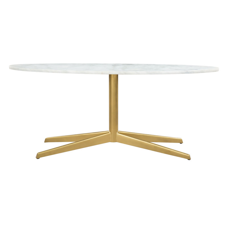 Zuo Parker 44 In White Large Oval Marble Coffee Table With Pedestal Base 101538 The Home Depot
