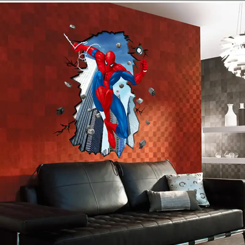 Cartoon Movie Peter Parker Poster 3d Spider Hero Through Wall Stickers Kids Boy Men Room Decor Self Adhesive Nursery Mural Decal Wall Sticker Poster 3dwall Sticker Kids Aliexpress
