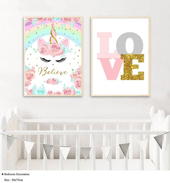 Unicorn Print Kids Prints Childrens Wall Art Nursery Decor Kids Wall Art Love Print Set Of 2 Printed By Claudia Parker Designs Catch My Party