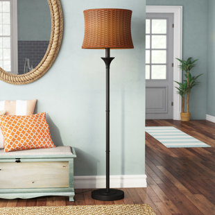 Patio Living Concepts 63 In Black Body Versailles Outdoor Floor Lamp With Stone Wicker Shade 19450 The Home Depot