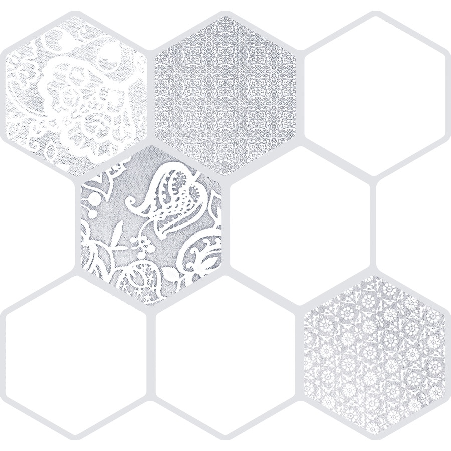 White And Gray Hexagon Pattern Bath Floor Tiles Transitional Bathroom