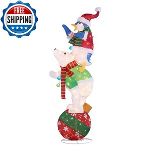 Amazon Com Holiday Time Christmas Decoration 48 Polar Bear And Penguin On Slide With Pre Assembled 140 Clear Miniature Lights Garden Outdoor