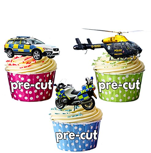 Pre Cut Real Police Vehicles Car Motorbike Helicopter Mix Edible Cupcake Toppers Cake Decorations Pack Of 12 Buy Online In Bahamas At Desertcart