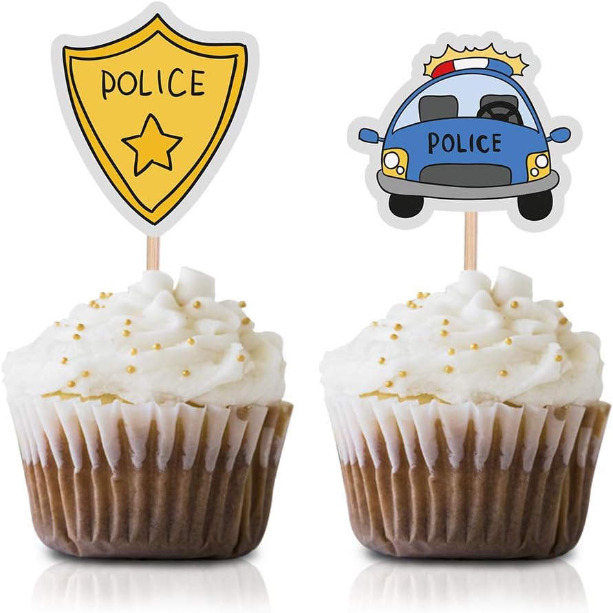 Amazon Com Police Party Cupcake Topper Picks 24 Pack Boy Girl Cops Baby Shower Or Kids Birthday Party Decorations Toys Games
