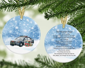 Amazon Com Christmas Ornaments Police Gifts For Men Or Women Law Enforcement Ornaments With A Silver Ribbon Policeman S Prayer Xmas Ornaments 1 Piece Home Kitchen