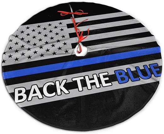 Amazon Com Back The Blue Police Line Flag Christmas Tree Skirt Xmas Tree Skirt For Holiday Christmas Decorations Home Kitchen
