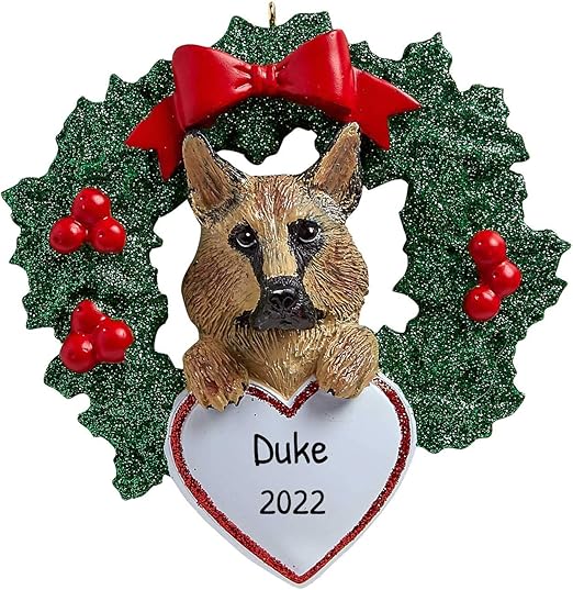Amazon Com Personalized German Shepherd With Wreath Christmas Tree Ornament 2020 Dog Paw Pure Love Play Intelligent Police Military Smart Active Protect Fur Ever New Loyal Family R I P Free Customization Home