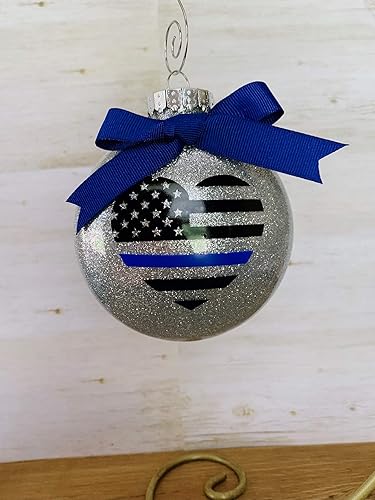 Thin Blue Line Ornament Police Ornament Law Enforcement Ornament Glitter Ornament With Thin Blue Line Bow C Police Christmas Glitter Ornaments Police Gifts