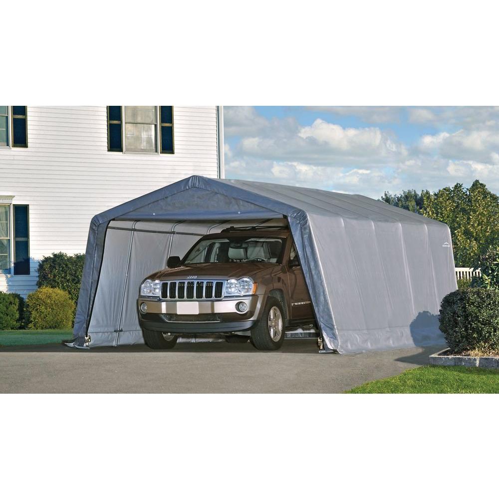 Shelterlogic 15 Ft W X 24 Ft D X 12 Ft H Steel And Polyethylene Garage Without Floor In Grey With Corrosion Resistant Steel Frame 95370 The Home Depot