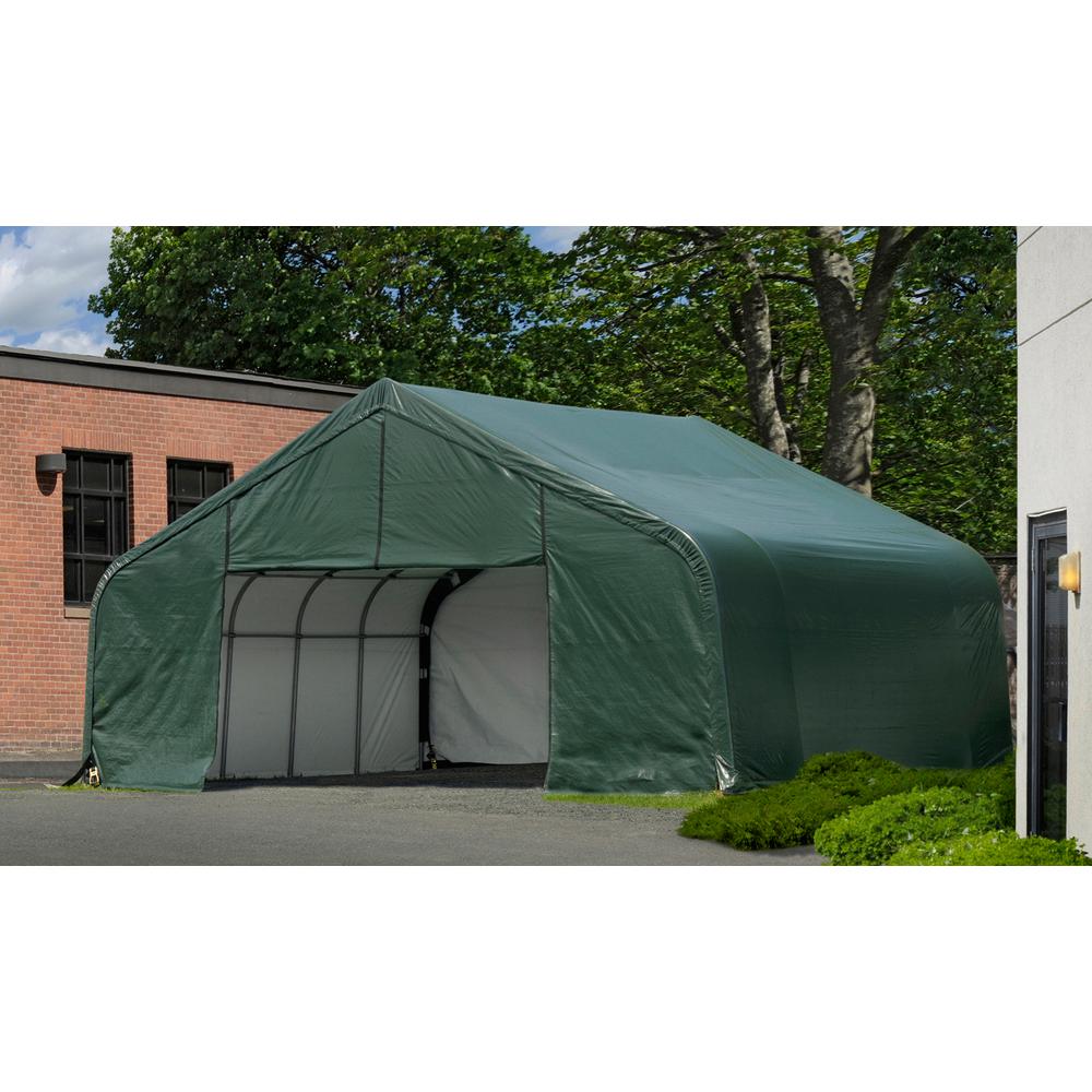 Shelterlogic 30 Ft W X 40 Ft D X 18 Ft H Galvanized Steel And Pvc Garage Without Floor In Green With Heavy Duty Green Cover Pecada0204f03004018 The Home Depot