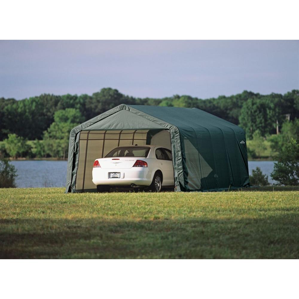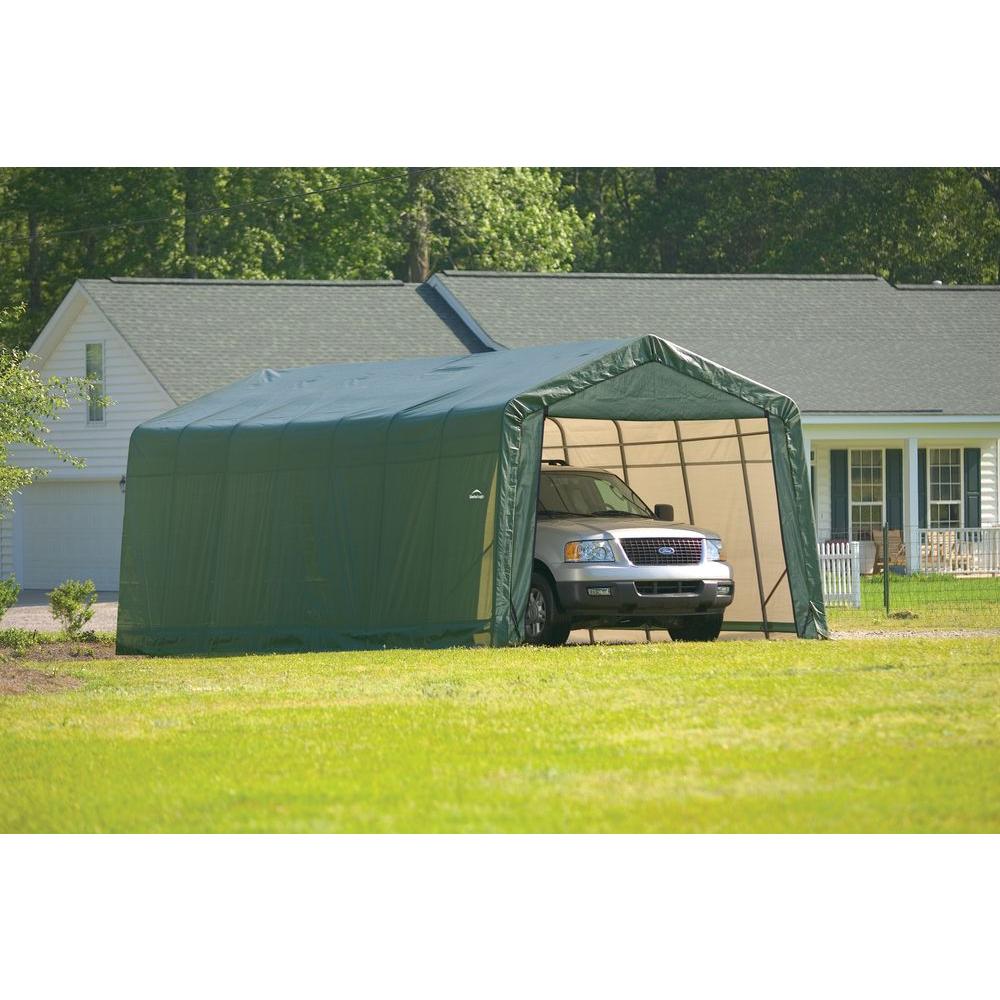 Shelterlogic 15 Ft W X 20 Ft D X 12 Ft H Steel And Polyethylene Garage Without Floor In Green W Corrosion Resistant Steel Frame 95351 The Home Depot