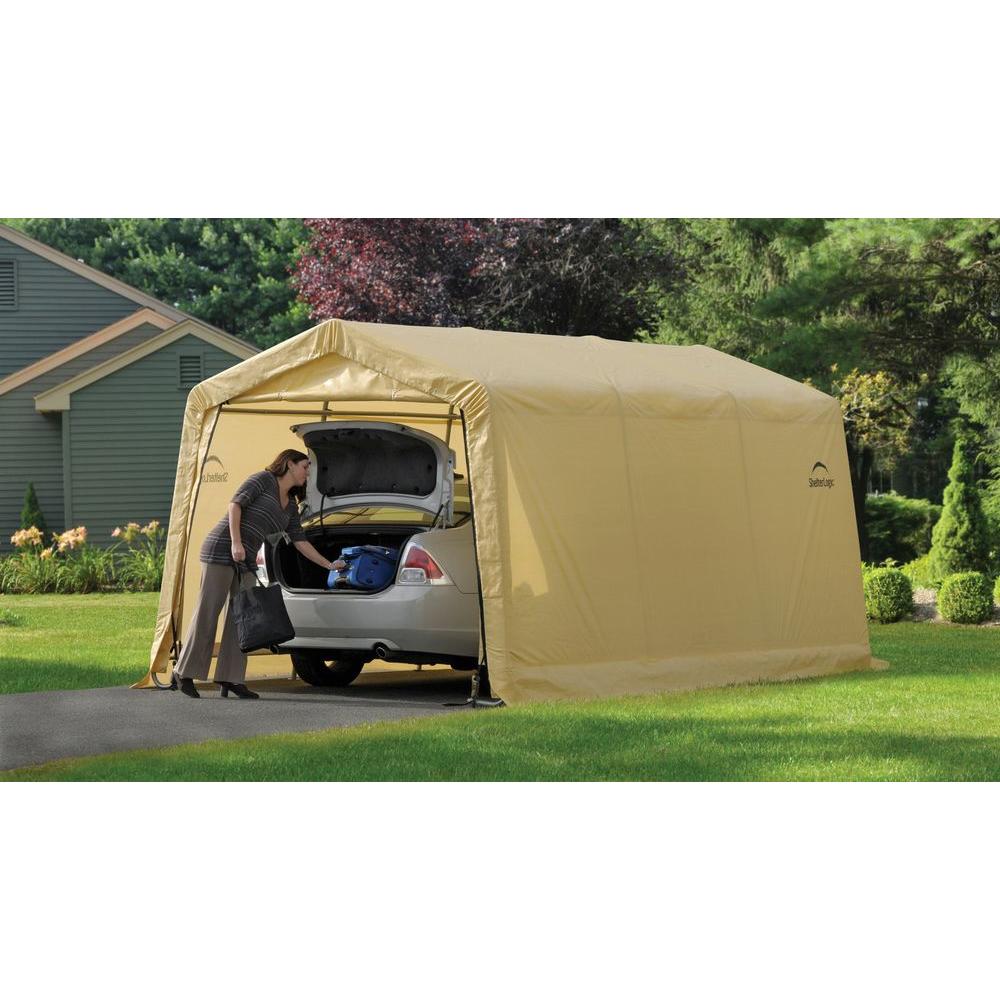 Shelterlogic 10 Ft W X 15 Ft D X 8 Ft H Pe Garage Without Floor In Tan W Patented Stabilizers And Best In Class Tightening 62681 0 The Home Depot