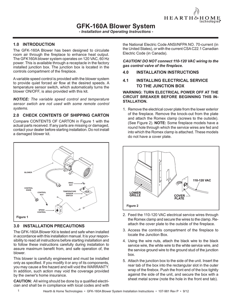 Gfk 160a Blower System Hearth Home Technologies Manualzz