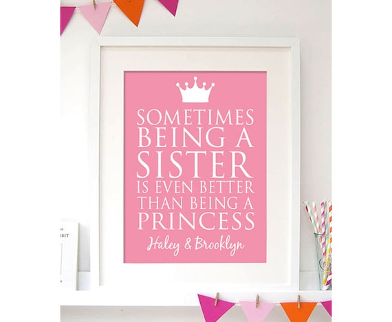 Princess Sister Wall Art Sister Decor Girl Room Big Etsy