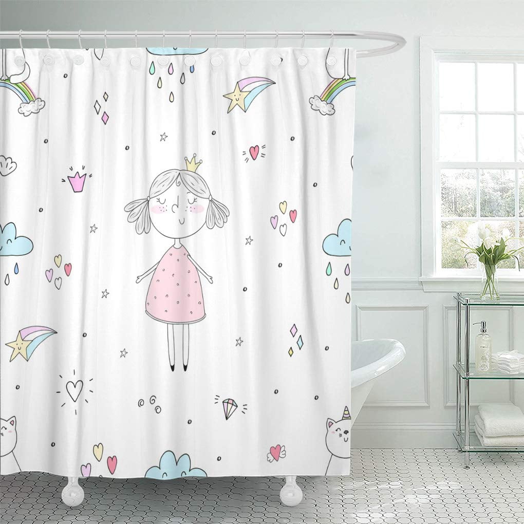 Cynlon Background Cartoon Positive Seamless Pattern Cute Girls Princess Art Bathroom Decor Bath Shower Curtain 60x72 Inch Walmart Com Walmart Com