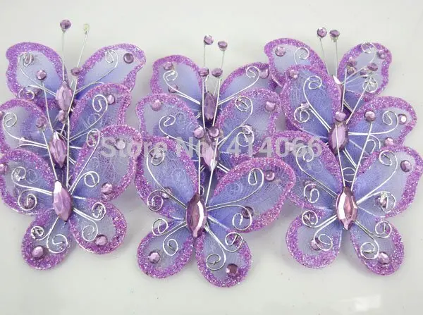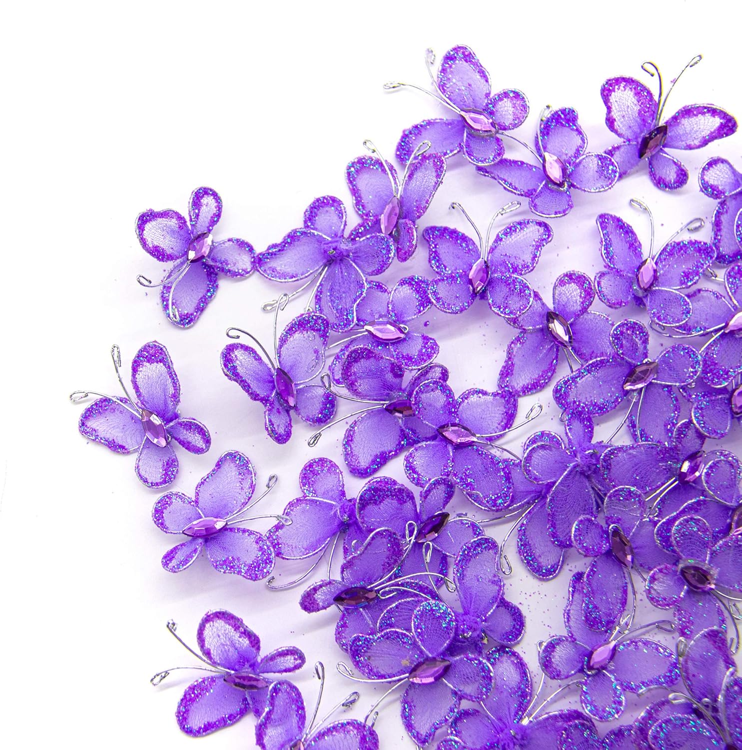 Amazon Com Auear 50 Pack Sheer Mesh Wire Glitter Butterfly Purple Butterfly With Gem For Home And Wedding Decoration Home Kitchen