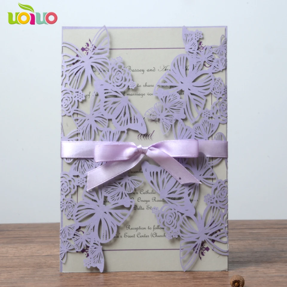 Hot Sell Lace Lavander Purple Butterfly Laser Cutting 3d Wedding Invitation Card Wedding Gifts Souvenir Decoration 3d Wedding Invitation Card Gift Card3d Gift Cards Aliexpress