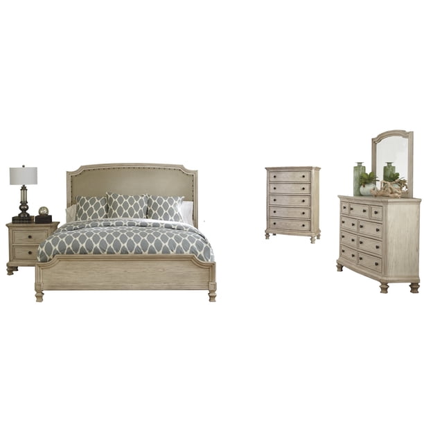 Ashley Furniture Demarlos 5 Pc Bedroom Set Queen Upholstered Bed 1 Nightstand Dresser Mirror Chest Parchment White Walmart Com Walmart Com