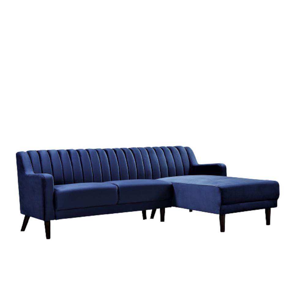 Us Pride Furniture 2 Piece Blue Channel Velvet 3 Seater L Shaped Right Facing Sectional Sofa With Tapered Legs 0162 R The Home Depot