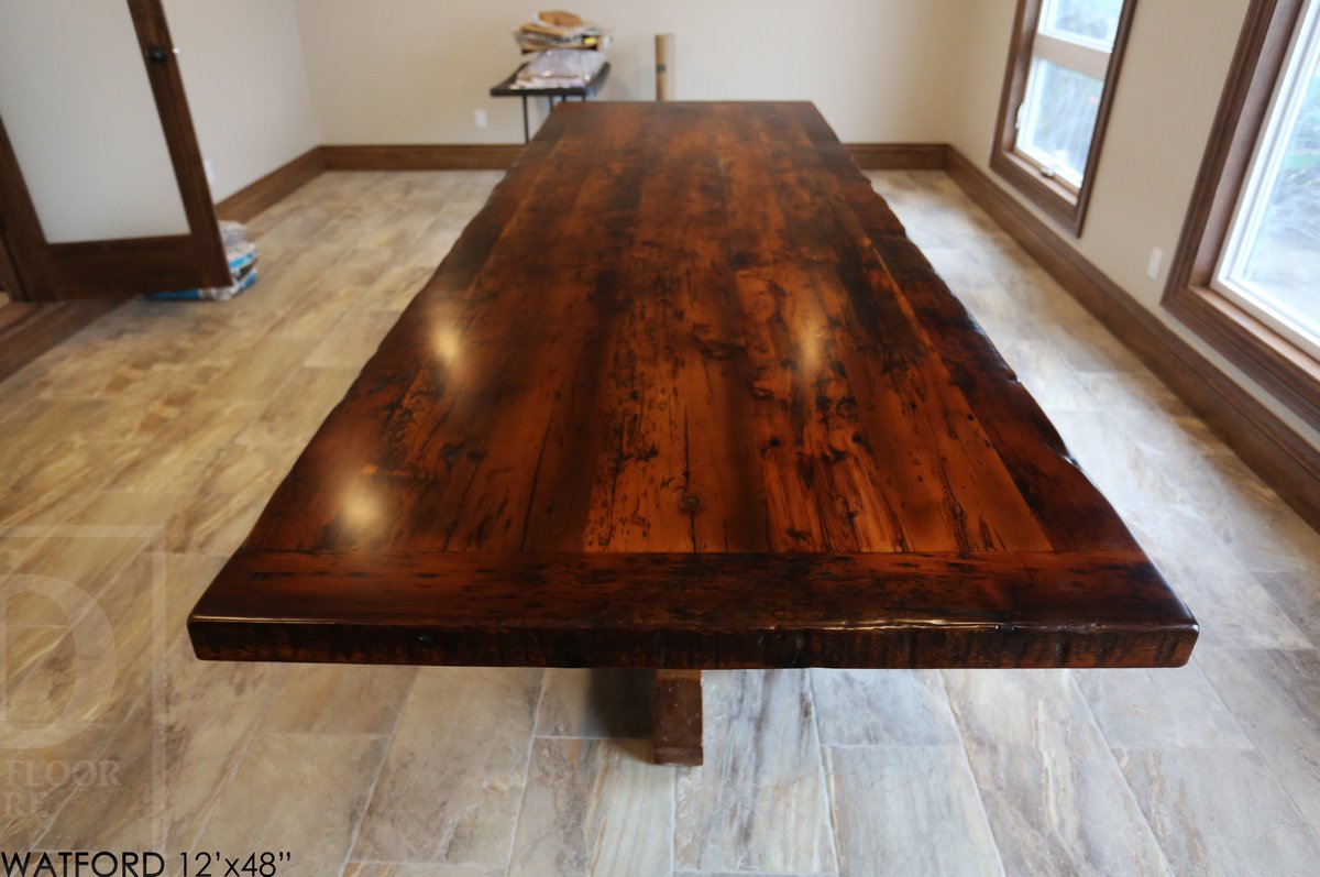 Ontario Reclaimed Barnwood Furniture On Twitter 12 Ft Reclaimed Wood Boardroom Table 48 Wide Hemlock Threshing Floor Construction Premium Epoxy Satin Polyurethane Finish Hand Hewn Beam Pedestals Base Original