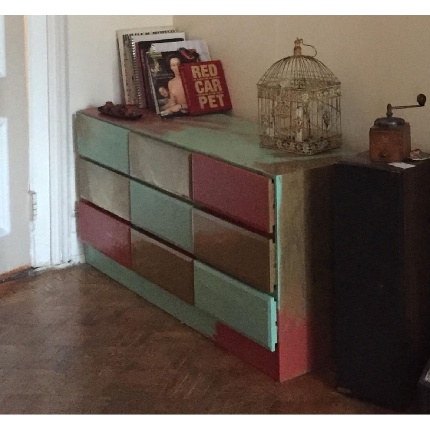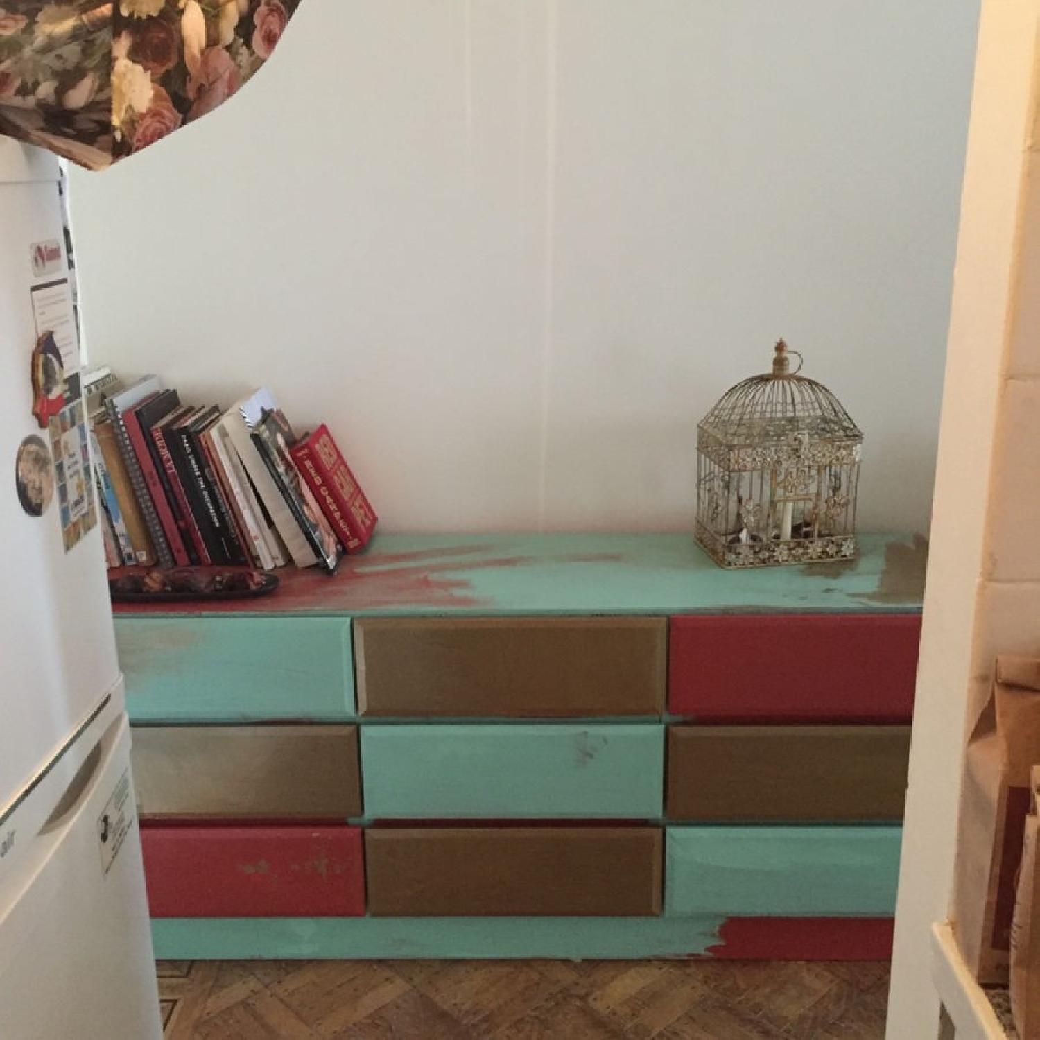 9 Drawer Red Cyan Gold Hand Painted Dresser Aptdeco