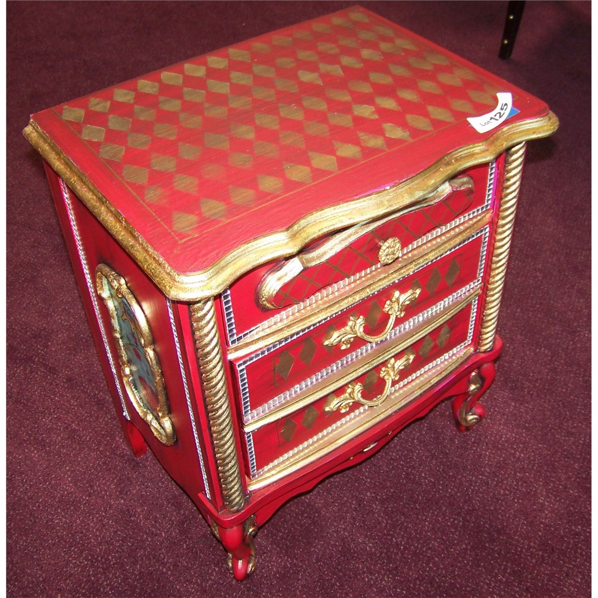 Red Gold Mirror Night Stand Uniquely Hand Painted