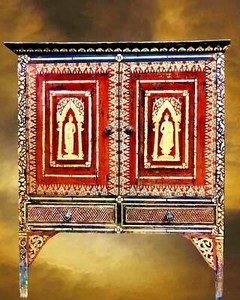 Red And Gold Hand Painted Tibetan Cabinet Overstock 3396538